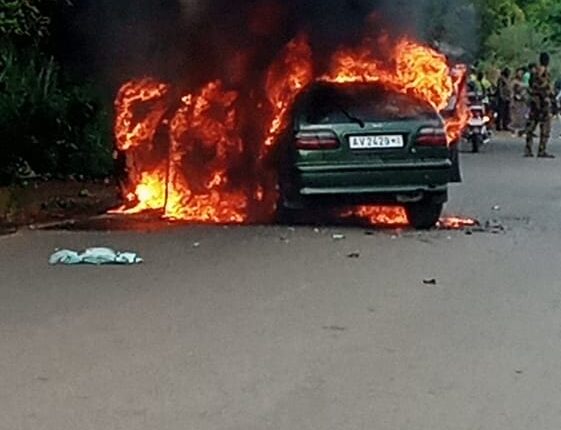 Un véhicule est actuellement en feu dans le département du Couffo. La scène se déroule sur le tronçon Dogbo – Djakotomey à hauteur de Kokohoué. Selon une source témoin de votre web média Le Potentiel, le véhicule aurait pris feu en pleine circulation. Il s’agit d’un véhicule de marque Almera. Alertés, les sapeurs-pompiers sont actuellement sur les lieux pour éteindre les flammes. Pour le moment aucun blessé, ni mort n’a été annoncé. Nous y reviendrons pour plus de détails.