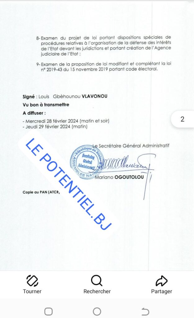 Les députés de l’assemblée nationale du Bénin sont invités ce jeudi 29 février 2024 à la prochaine séance plénière. Cette rencontre qui est prévue pour prendre son envol à partir de 10h au palais des congrès des gouverneurs va permettre aux représentants du peuple de se pencher sur 09 différents points inscrits à l’ordre du jour. C’est le cas de l’examen de la proposition de loi , portant révision de la constitution en république du Bénin.