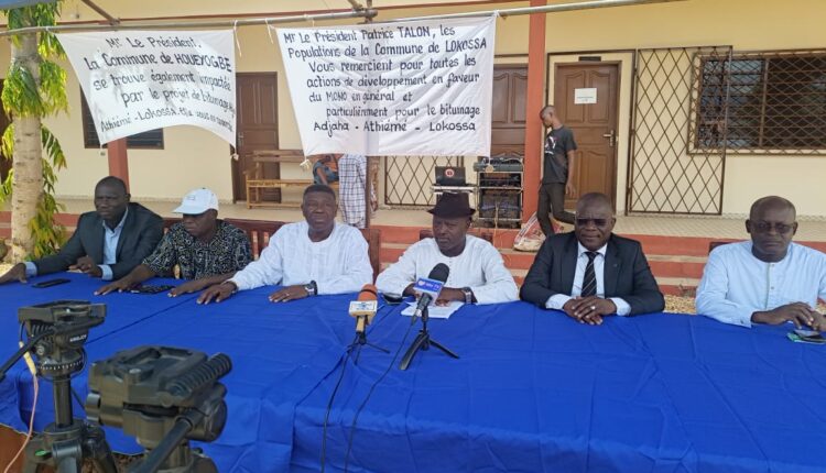 Nous, collectif des maires et conseillers communaux du Mono, adressons au président de la république Patrice Talon, au nom des laborieuses populations du Mono, nos vifs et chaleureux remerciements et nos sentiments de profonde gratitude pour non seulement le désenclavement des zones traversées mais aussi une avancée considérable vers le développement économique de nos communes et ses villes tant rêvé, exprimons notre soutien sans faille aux idéaux du développement équilibré et d’équité que vous n’avez jamais cessé de promouvoir pour le Bénin en général et le Mono en particulier.