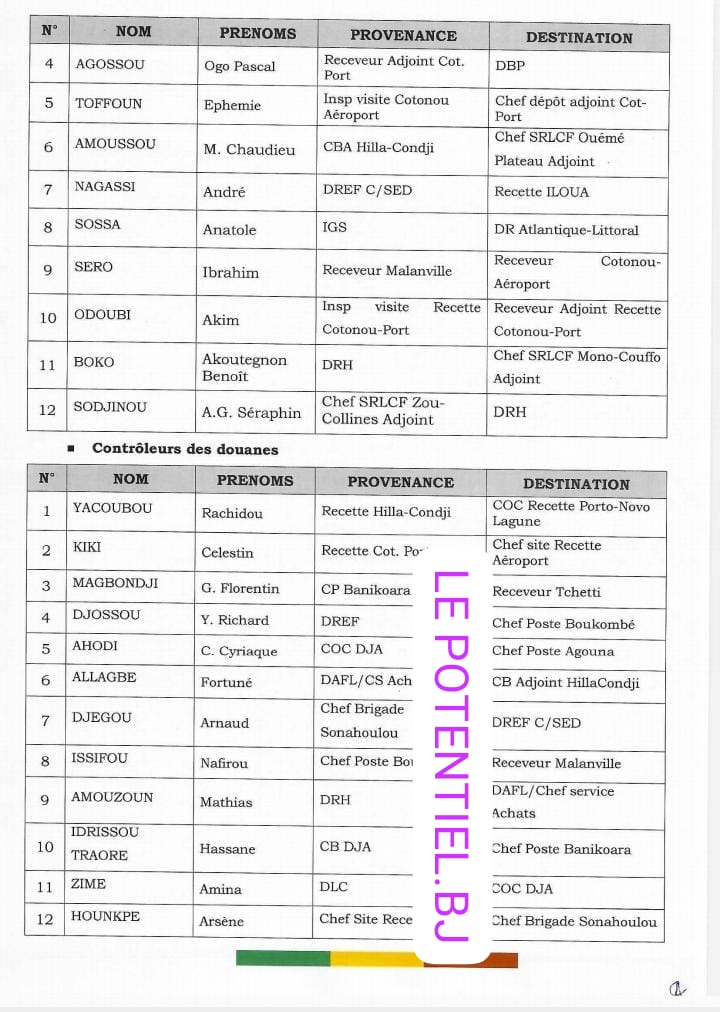 La note signée ce mardi 09 avril 2024 par la Directrice Générale des Douanes Adidjatou Hassan Zanouvi envoie ces agents dans différentes localités du Bénin pour continuer de servir la République.