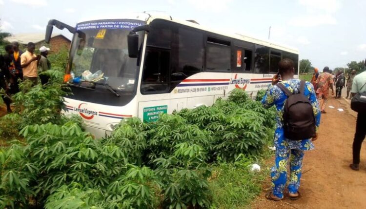 Accident à Bohicon : un bus de la compagnie « Lemuel Express » vire brusquement dans la brousse à Kpassagon