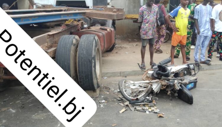 Dans sa course non contrôlée , il a quitté sa trajectoire et s’est retrouvé sur la piste des motocyclistes ayant quitté Cotonou bloquant la circulation. En matière de bilan, l’on note un blessé conduit à l’hôpital, une moto entièrement détruite et des dégâts matériels.