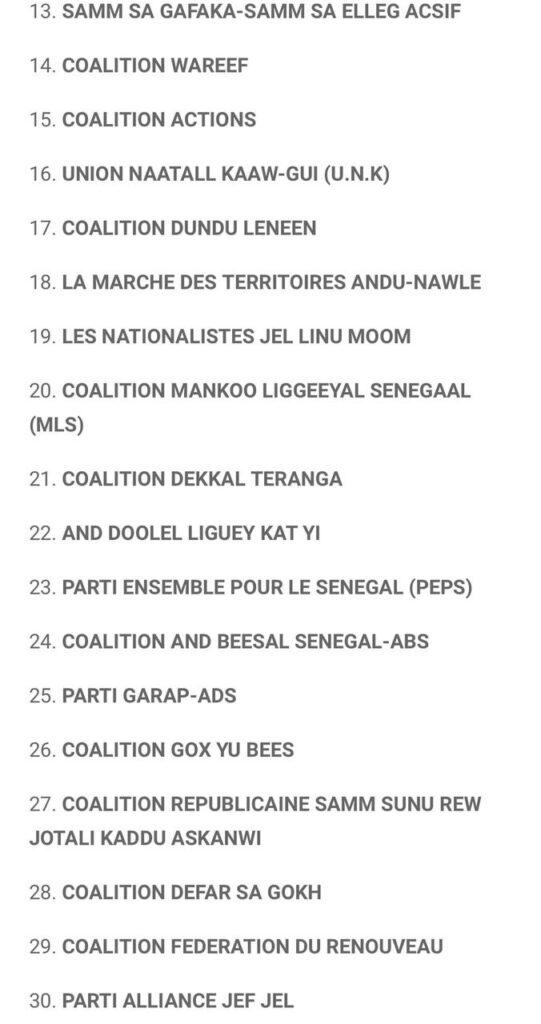 Dans le cadre des élections législatives du 17 novembre prochain au Sénégal , la Direction Générale des Élections (DGE) a retenu 41 listes suite aux vérifications des dossiers par la commission de réception à la Direction générale des élections.