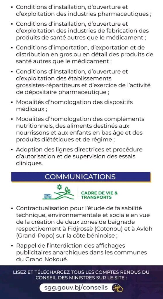 Le conseil des ministres s’est réuni ce mercredi 6 novembre 2024 sous la présidence effective du chef de l’État Patrice Talon. Retrouvez ici les grandes lignes des décisions prises.