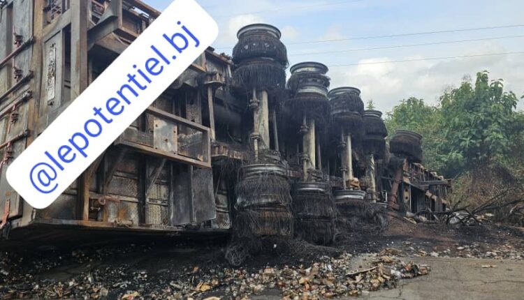 🚨Département des collines: un camion titan consumé par les flammes après une embardée fatale à Dassa-Zoumè