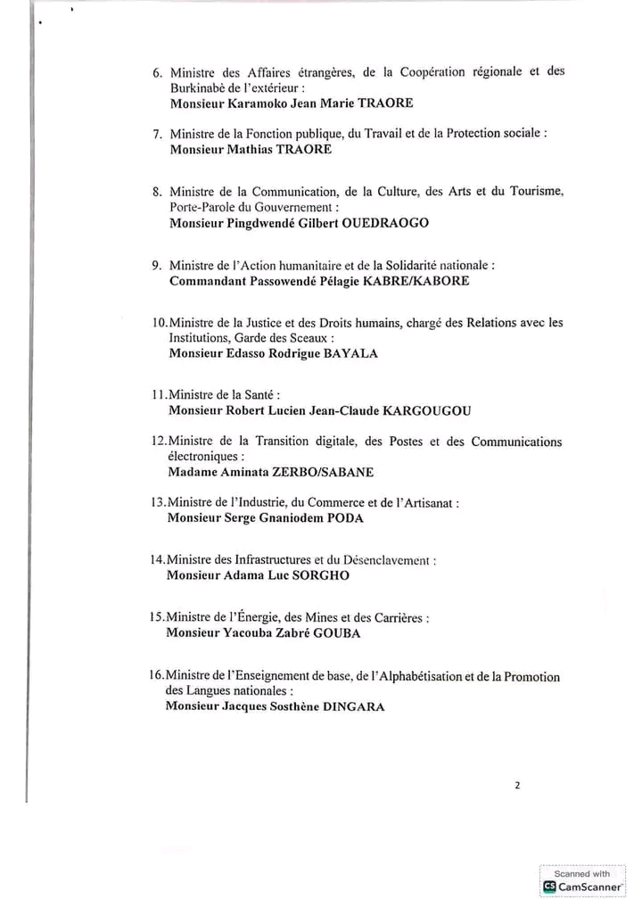 Le Gouvernement du Burkina Faso est composé ainsi qu’il suit :
