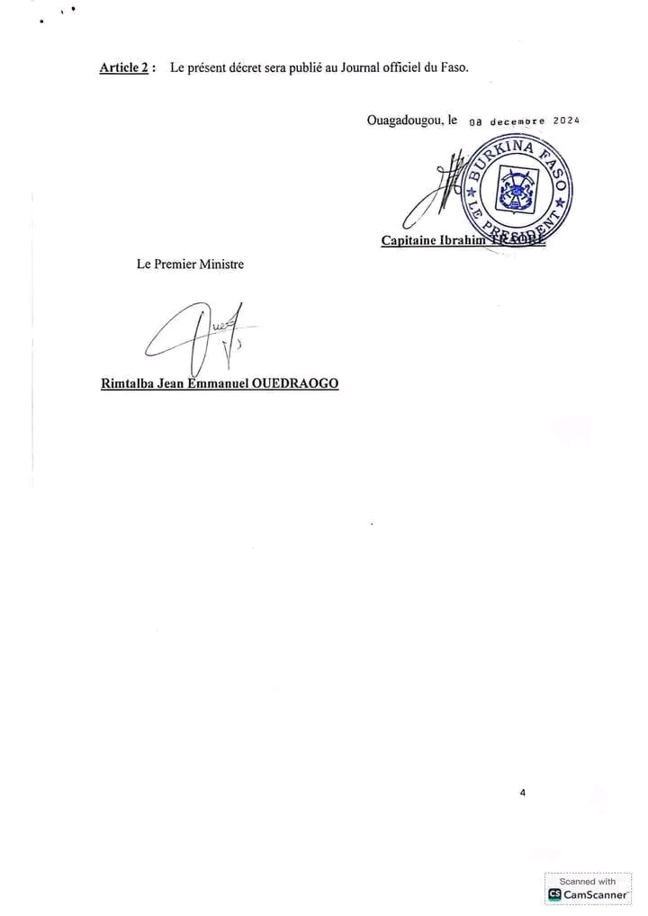 Article 2 : Le présent décret sera publié au Journal officiel du Faso.