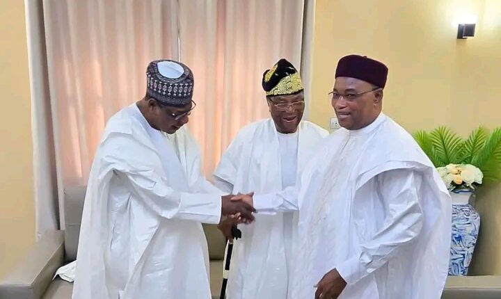 Les anciens présidents Nicéphore Dieudonné Soglo (Bénin), Thomas Boni Yayi (Bénin) et Mahamadou Issoufou (Niger) se sont retrouvés à Lomé avant de prendre la route pour Kara, où se tiennent les commémorations du 20ᵉ anniversaire du décès du président Gnassingbé Eyadéma, ce 4 février 2025.