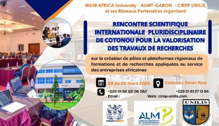 Pour la création de pôles et plateformes régionaux de formation et de recherche appliquée au service des entreprises africaines et le développement économique de l’Afrique, IRGIB-AFRICA va co-organiser avec l’African University of Management & Technologies AUMT et le CIREP de l’Université de Lisala, une rencontre scientifique Internationale Pluridisciplinaire à Cotonou.