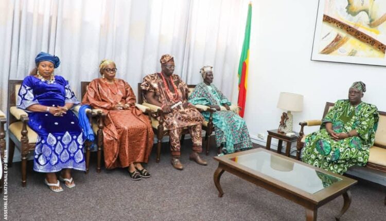 Une délégation de l’Association pour le Développement de la Cité Royale d’Adja-Ouèrè conduite par le roi ADEWORI IWALOYE a été reçue dans la matinée de ce lundi 10 mars par le Président de l’Assemblée nationale Louis VLAVONOU. Au cœur des échanges, la reconnaissance du royaume d’Adja-Ouèrè dans le cadre du vote de la loi sur la chefferie traditionnelle au Bénin déjà en examen au parlement actuellement. La délégation est venue exposer à l’autorité parlementaire, la particularité du royaume d’Adja-Ouèrè.