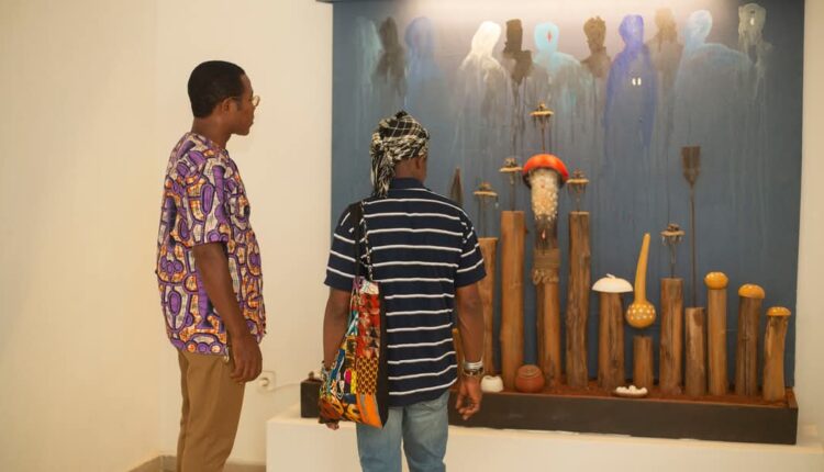 C’est plus d’une dizaine d’œuvres que Bamouss propose au public sur son exposition individuelle ‘’Kancicà’’ actuellement en cours à l’espace culturel ‘’Le Centre’’ de Lobozounkpa dans l’arrondissement de Godomey, commune d’Abomey-Calavi. Á travers différents médium, Basile Moussougan explore l’interdépendance entre l’être humain et son environnement, le monde physique et le monde spirituel, tout en questionnant la relation avec la nature et l’histoire. Ces œuvres sont intitulées : ‘’les ancêtres’’, ‘’le messager’’, ‘’les dignitaires’’, ‘’Réunion’’, ‘’Transcendance’’, ‘’les habitants du vide’’, ‘’l’unité’’, ‘’Gardien du temple’’, ‘’Pureté’’, ‘’Guerriers’’, ‘’Concertation’’, ‘’Le Lien’’ ; combinant la technique mixte et des installations. « Nous avons tous un univers commun que j’ai appelé le lien. Les ancêtres, font partie d’un lien que vous et moi, avons tous ensemble en commun. C’est-à-dire nos descendants que nous commémorons chaque fois et tout le temps », a expliqué Bamouss.