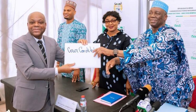 Le président de la Cour constitutionnelle, Dorothé SOSSA et certains de ses collègues Conseilleurs étaient hier 15 avril 2025 au siège de la Commission Electorale Nationale Autonome (CENA) afin de recevoir des mains des responsables de l’institution, le chronogramme des élections générales de 2026. Une première expérience à laquelle le Bénin se prépare activement suivant un calendrier bien établi. En recevant ce document, le président de la Cour Constitutionnelle s’est dit « disponible et accessible pour tous ceux qui ont besoin de la Cour à titre préparatoire ou dans l’action ».