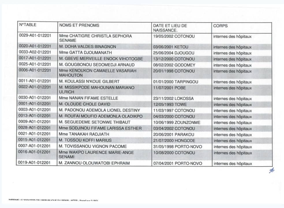Le processus de recrutement de trente (30) internes des hôpitaux, élèves fonctionnaires de l’État au profit du Ministère de la Santé, franchit une nouvelle étape.