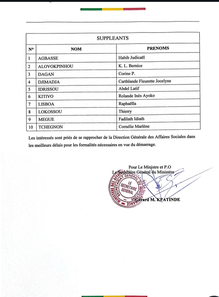 Les résultats de ce processus ont été rendus publics à travers un communiqué en date du mercredi 7 mai 2025, signé par Gérard Kpatindé, Secrétaire Général du ministère.
