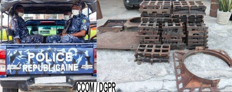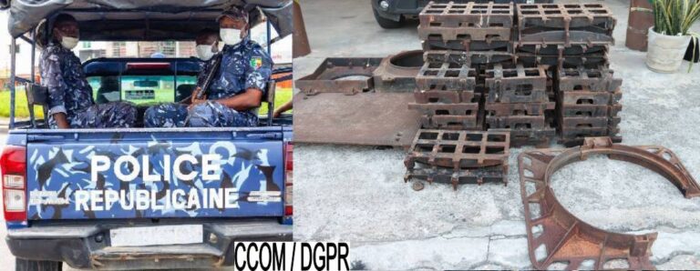La Police Républicaine du Bénin a intercepté une importante cargaison de couvercles en acier volés sur le réseau d’assainissement urbain. Ces équipements, indispensables à la sécurité des usagers de la route, étaient illégalement extraits pour être revendus à des fondeurs.