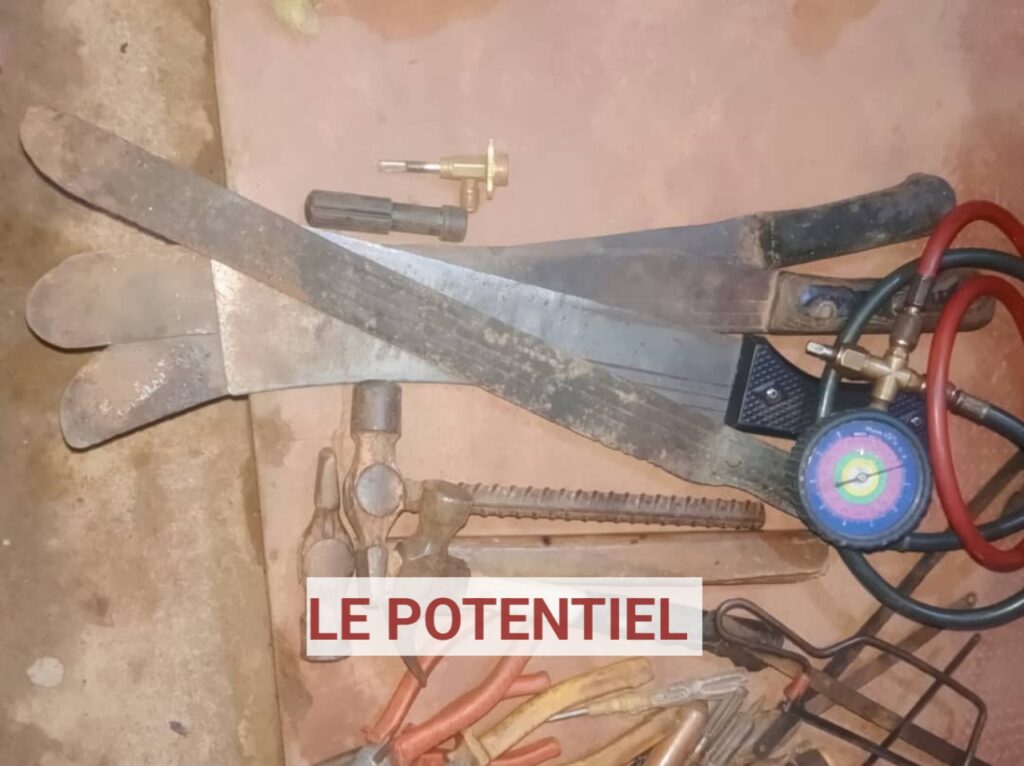 Drogues synthétiques (Socomol, Royal 225, Aka Forte), alcool frelaté à base de plantes, faux médicaments en vente libre, machine à sous, masque utilisé lors de braquages, plusieurs machettes, arrache-clous, et un lot de clés suspectes