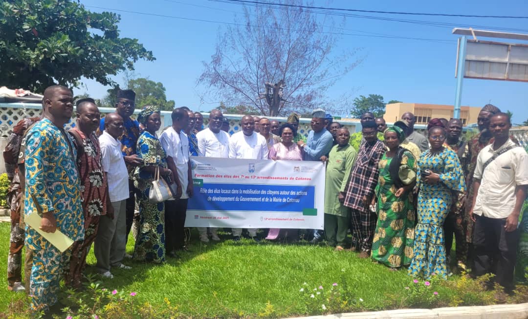 Les élus locaux ou encore les Chefs Quartiers (CQ) du 7e au 13e arrondissement de Cotonou ont été sensibilisés ce vendredi 30 Mai 2025 autour des actions de développement du Gouvernement du Président Patrice Talon et de la Mairie de Cotonou. C’est une initiative de l’Association des Communes de l’Atlantique et du Littoral (ACAL) avec le soutien des autorités municipales de la ville de Cotonou.
