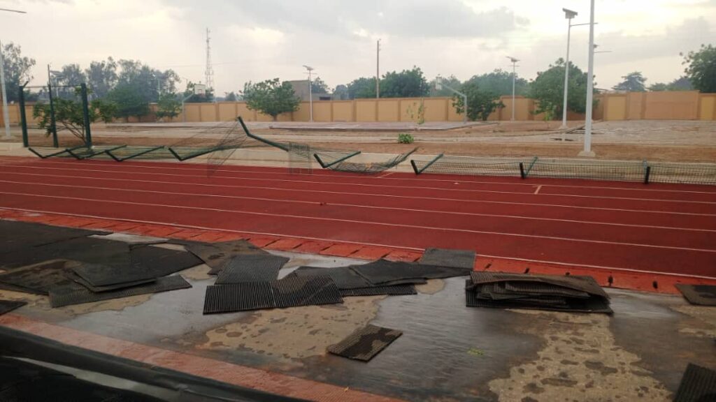 Les premières images, diffusées tôt ce samedi 7 juin, témoignent de la violence du phénomène. Des toits envolés, des poteaux arrachés, des plateaux électriques de la SBEE jonchant le sol, la tempête n’a rien épargné sur son passage. Le vent a également ravagé le stade Omnisport de Malanville. La pelouse en gazon synthétique a été fortement détériorée, le grillage de sécurité arraché, et des climatiseurs installés dans les vestiaires emportés.