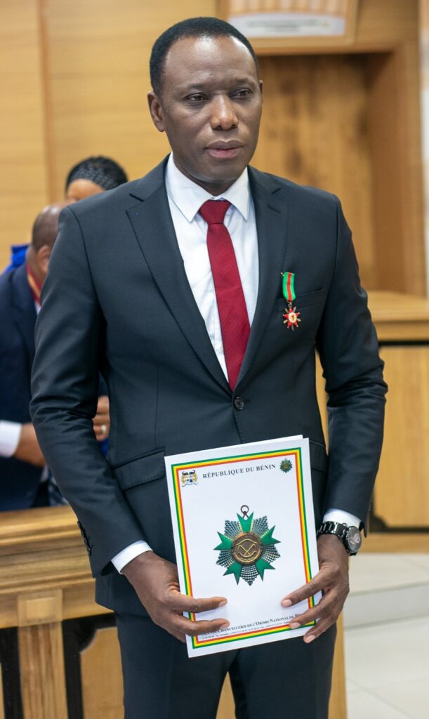 Et ceci en reconnaissance de son parcours professionnel riche et son dévouement au travail. Selon le président de la Cour Constitutionnelle qui a présidé la cérémonie, cette distinction de son collaborateur répond aux critères exigés pour les professionnels des médias. « Aujourd’hui délégataire du pouvoir de la vice-présidente de la République pour l’occasion, je voudrais évoquer les qualités requises par le service républicain pour la nomination d’un professionnel des médias dans l’ordre du mérite. Il faut à cet effet disposer d’une compétence professionnelle reconnue, d’une bonne moralité, d’une rigueur certaine et faire preuve d’engagement dans l’investigation pour la recherche de la vérité », a fait savoir le Professeur Dorothé Cossi Sossa au micro de Radio Bénin.