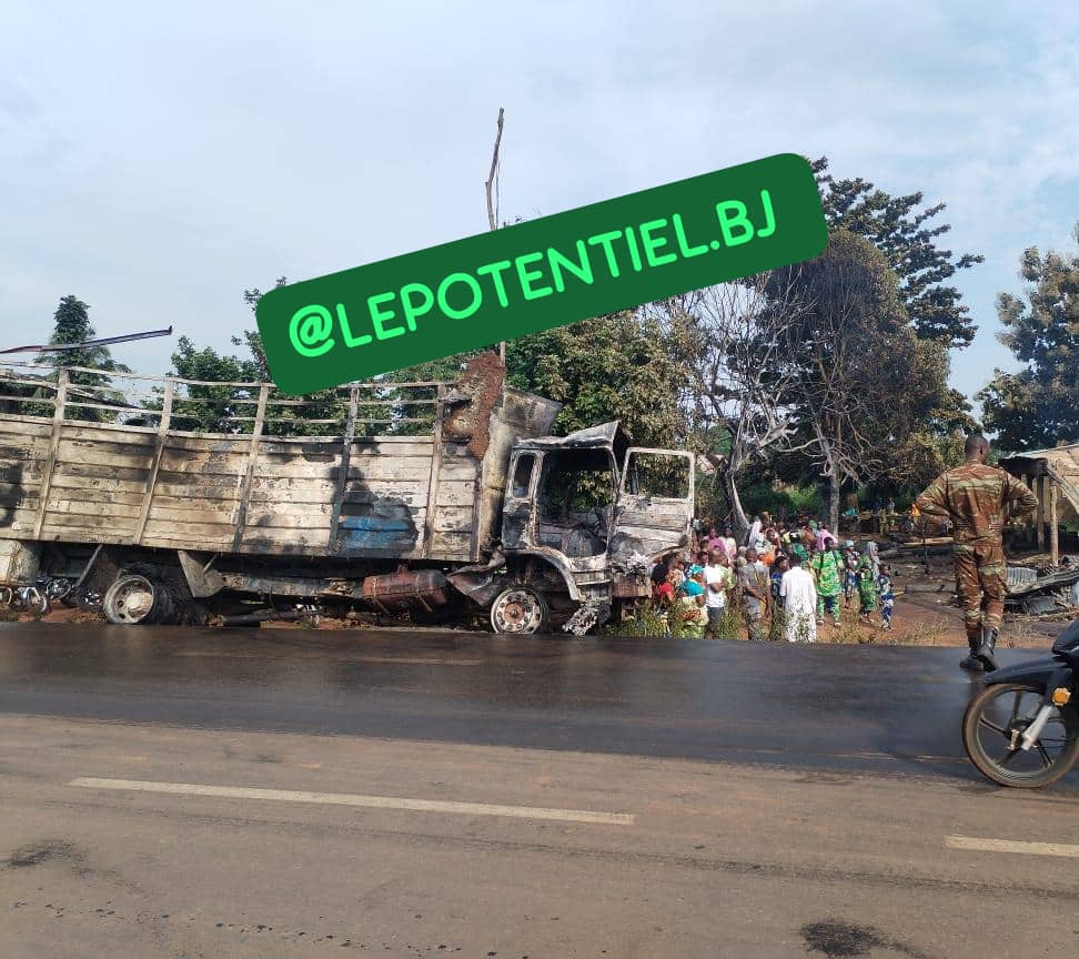 Un camion chargé d’essence de contrebande a pris feu ce dimanche 22 juin 2025, un peu avant l’aube, dans le village Ogoukpatè, arrondissement de Okoakari dans la commune de Adja-Ouèrè, département du Plateau. Le Groupe de presse Le Potentiel, à travers son Département Enquête et Investigation (DEI), a pu constater les dégâts sur place, trois morts calcinés, une scierie consumée, des installations électriques détruites, un immeuble noirci et la chaussée dégradée.