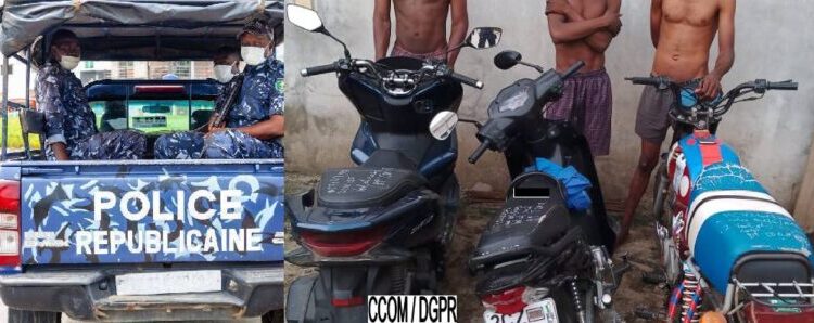 Dans la nuit du 20 au 21 juin 2025, la police de Godomey a mis la main sur un réseau de cambrioleurs spécialisés dans le vol de motocyclettes. Trois présumés malfrats ont été arrêtés et plusieurs engins saisis. Une opération de contrôle a permis aux agents du commissariat de Godomey d’épingler un premier suspect au quartier Womey. Ce dernier, au guidon d’une moto de marque HAOJUE, a tenté de fuir face aux forces de l’ordre. Rattrapé, il s’est montré confus sur l’origine de l’engin avant de passer aux aveux. Il a reconnu appartenir à un réseau de voleurs de motos et de cambrioleurs opérant dans la commune.