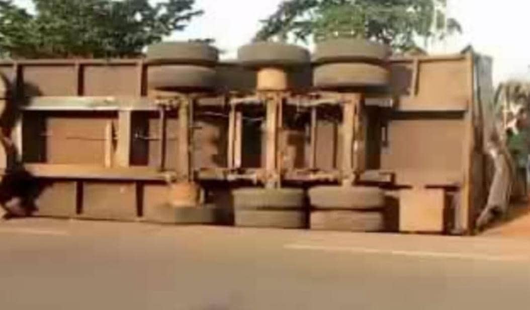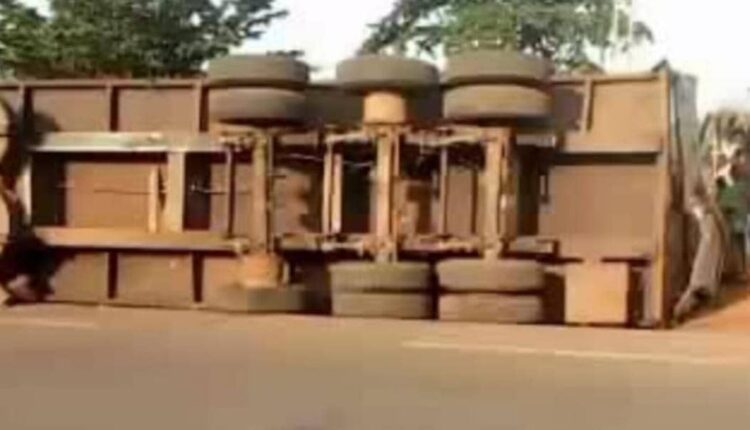 Département des Collines: Circulation interrompue à Savè, un camion chargé de riz se renverse à l’entrée de Gogoro