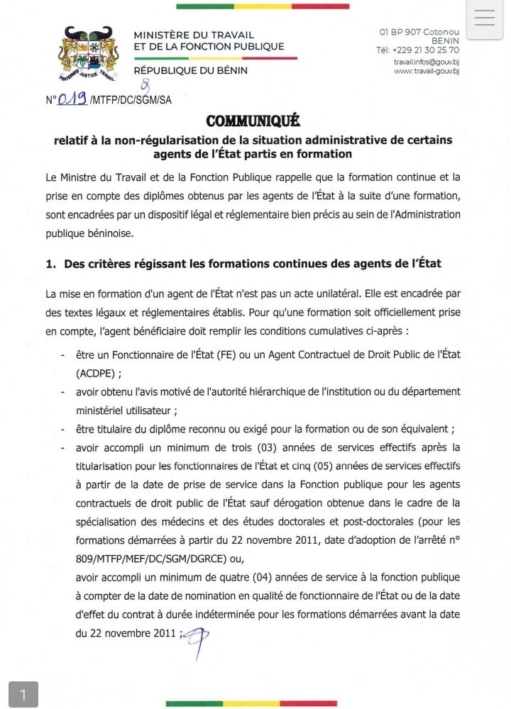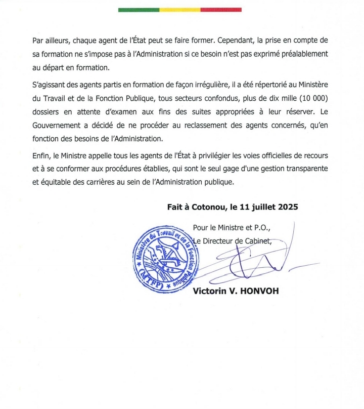 Le ministère met en garde les agents de l’État contre toute tentative de contournement des procédures. Il rappelle que les règles en matière de formation continue dans l’administration sont strictes, toute initiative individuelle sans validation préalable de l’autorité compétente est considérée comme irrégulière, avec toutes les conséquences que cela implique.
