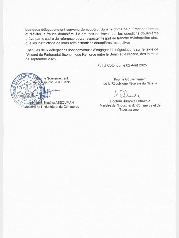 Bénin–Nigeria : Vers un accord de coopération Économique renforcé dès septembre 2025