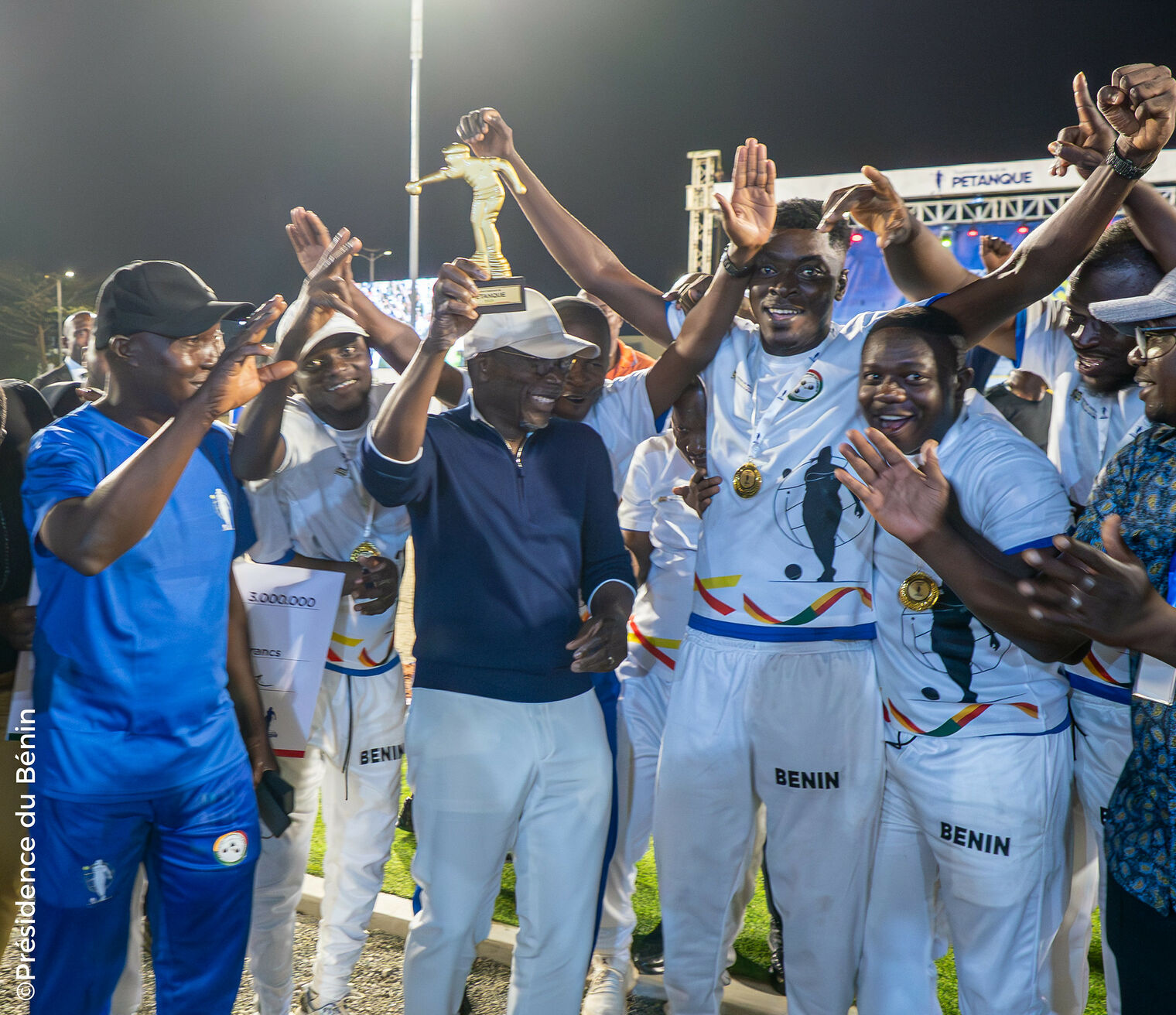 Les 2 et 3 août 2025, l’Esplanade de l’Amazone à Cotonou a été le théâtre d’une ambiance mêlant ferveur populaire et solennité, à l’occasion des finales du Tournoi national de Pétanque dénommé « Nocturne de Pétanque ». Juniors, seniors et doublettes mixtes s’y sont affrontés dans des confrontations sous le regard attentif du Président de la République, Patrice Talon, venu personnellement honorer cet événement sportif majeur.