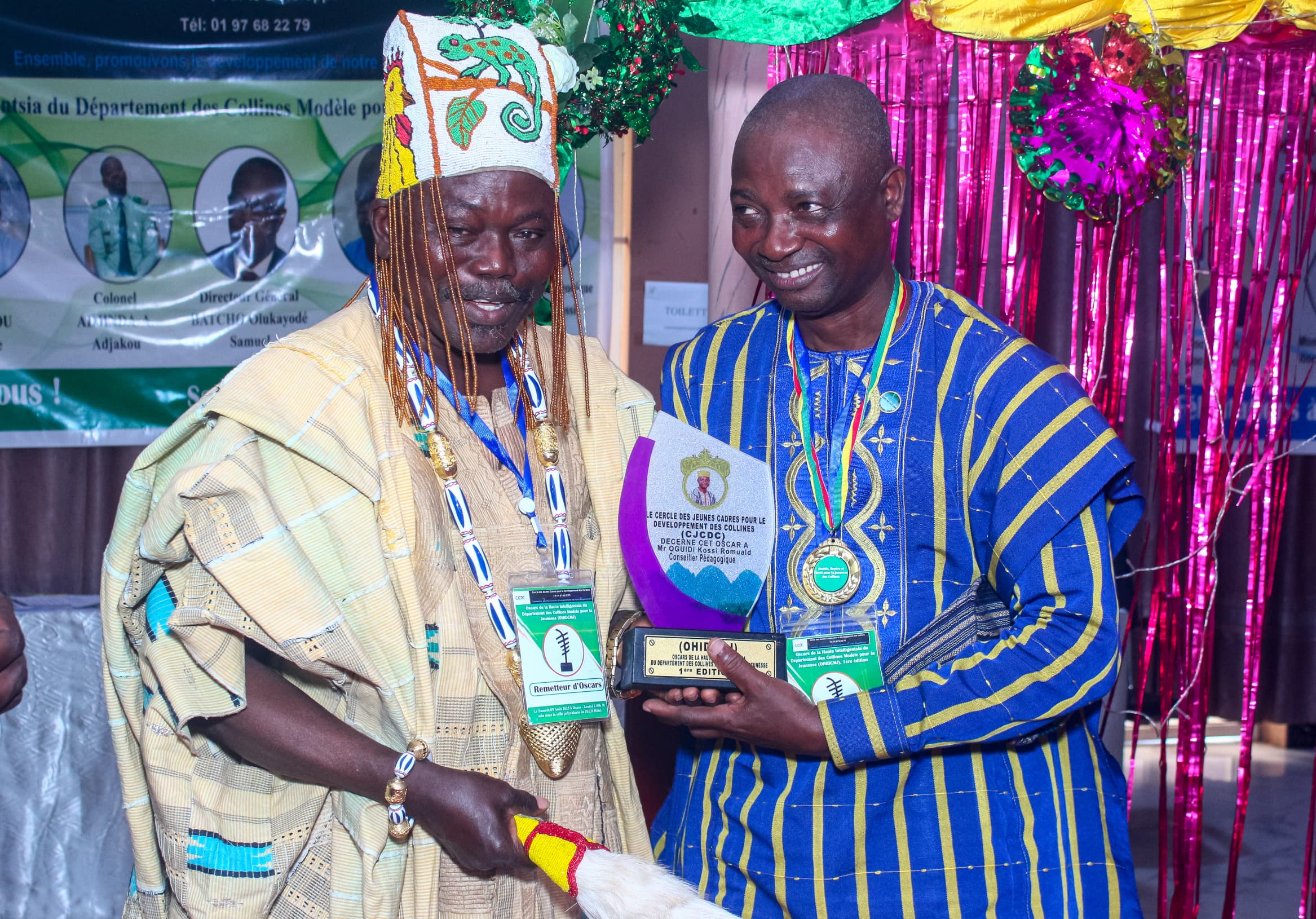 Dans sa dynamique de détection et de révélation des valeurs, des perles rares, des altruistes discrets mais à forts impacts communautaires dans le département des Collines, le cercle des jeunes cadres du département des Collines (CJCDC) a identifié, pour cette 1ère édition des oscars de la haute intelligentsia, des hommes d’actions au parcours exceptionnel et exemplaire.