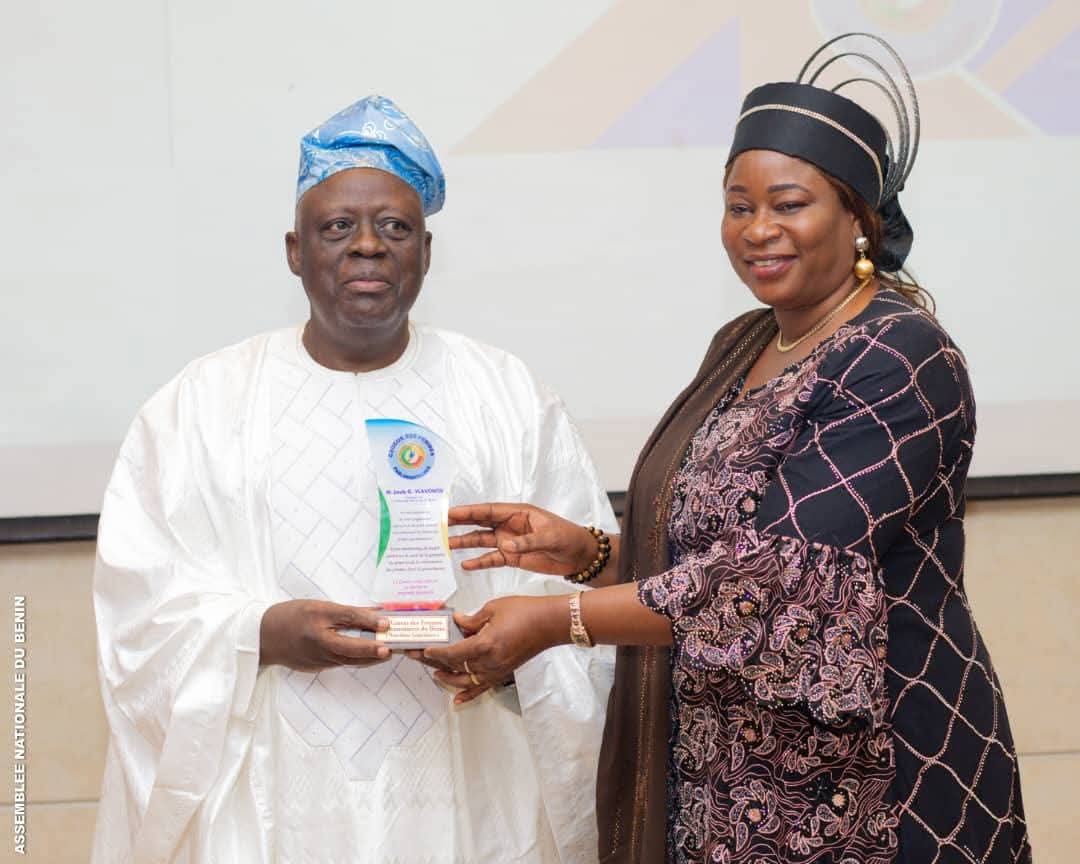 La soirée a également été marquée par un hommage rendu au président de l’Assemblée nationale, Louis Gbèhounou Vlavonou, salué comme un allié constant du leadership féminin. Recevant sa distinction, il a exprimé sa reconnaissance et réaffirmé son engagement à accompagner la cause des femmes parlementaires.