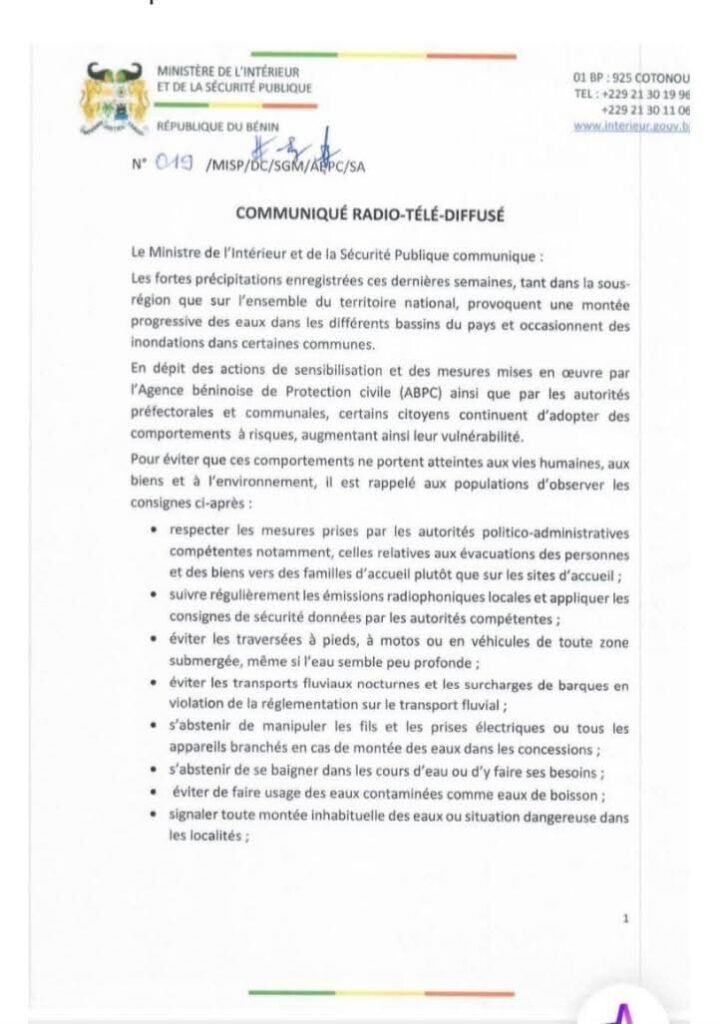 Le gouvernement réaffirme, à travers ce message, sa volonté de renforcer la prévention et la résilience des communautés, mais insiste sur la responsabilité de chacun dans la lutte contre les conséquences des inondations.