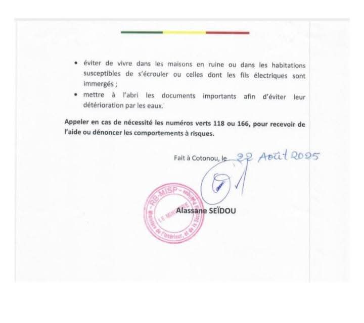 Le ministère de l’Intérieur et de la Sécurité publique a tiré la sonnette d’alarme face à la montée inquiétante des eaux sur plusieurs localités du pays. Dans un communiqué rendu public, le ministre Alassane Seidou met en garde contre les risques accrus d’inondations et appelle les citoyens à redoubler de prudence.