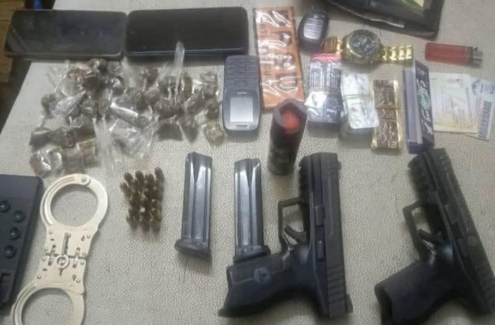Sept armes à feu, dont un fusil semi-automatique, un pistolet automatique et plusieurs fusils artisanaux ; Des munitions, notamment de calibre 7,62 mm et 12 ; Des effets militaires (bérets, rangers, blousons treillis, ceinturons) ; Cinq téléphones portables utilisés par les suspects.