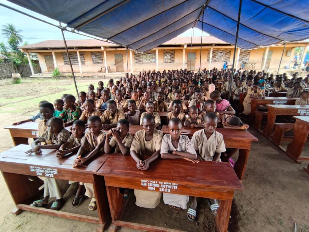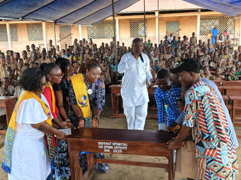 L’éducation, droit fondamental universellement reconnu, reste une priorité au Soroptimist International Club Cotonou Améthyste, présidé par Jocelyne Amassè. Ce samedi 27 septembre 2025, le club a marqué un pas décisif en faveur des élèves de l’école primaire publique de Kpinnou, commune d’Athiémé, département du Mono. Cent (100) tables-bancs offerts, des salles de classe et des toilettes entièrement réfectionnées, en présence des acteurs du système éducatif et des responsables Soroptimist au Bénin.