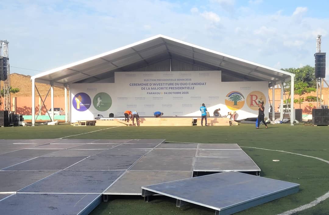 Comme annoncé depuis plusieurs semaines, l’investiture du duo de la mouvance, Romuald Wadagni – Mariam Chabi Talata Zimé, pour la présidentielle de 2026 au Bénin, va se tenir demain samedi 4 octobre 2025 à Parakou, la cité des Koubourou. À moins de 24 h de cette investiture qui s’annonce avec beaucoup de couleurs, on peut affirmer sans se tromper que tout est prêt pour l’événement, au regard du constat sur le terrain cet après-midi à notre arrivée.