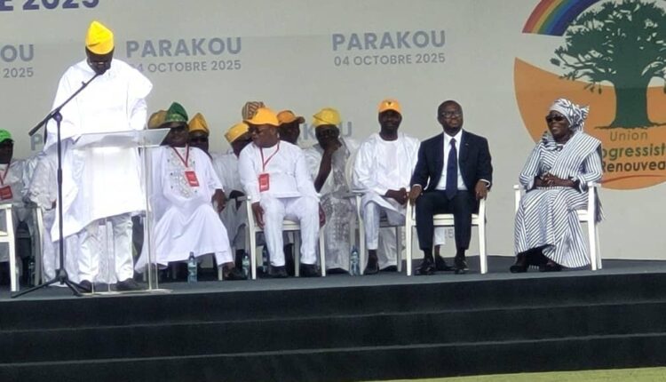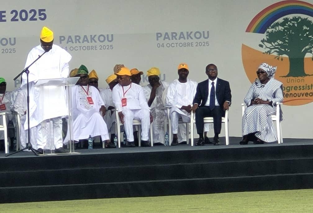 Lecture de la décision portant validation du choix du duo candidat des partis : Renaissance Nationale (RN) de Moele-Bénin, Bloc Républicain et de l’Union Progressiste Le Renouveau; suivi des déclarations de soutien des partis respectifs. Voilà les deux actes forts qui ont marqué le début de cette cérémonie d’investiture du duo Romauld Wadagni-Mariam Chabi Talata Zimé pour la présidentielle du 12 Avril 2026, ce samedi 4 octobre 2025 au stade de Parakou. Et ceci avec la plus grande solennité et la plus grande ferveur. Après donc les discours successifs des 4 partis qui portent la candidature de la mouvance, l’assistance a eu l’honneur d’écouter pour la première fois depuis sa désignation, le mot du candidat au poste de président de la République, le Ministre d’Etat, Ministre de l’Économie et des Finances, chargé de la Coopération, Romuald Wadagni. Il sera suivi de la Vice-Présidente de la République, Grande Chancellerie, Mariam Chabi Talata Zimé.