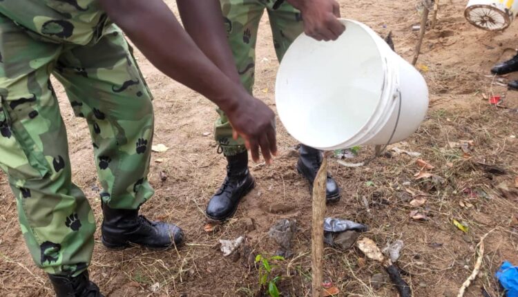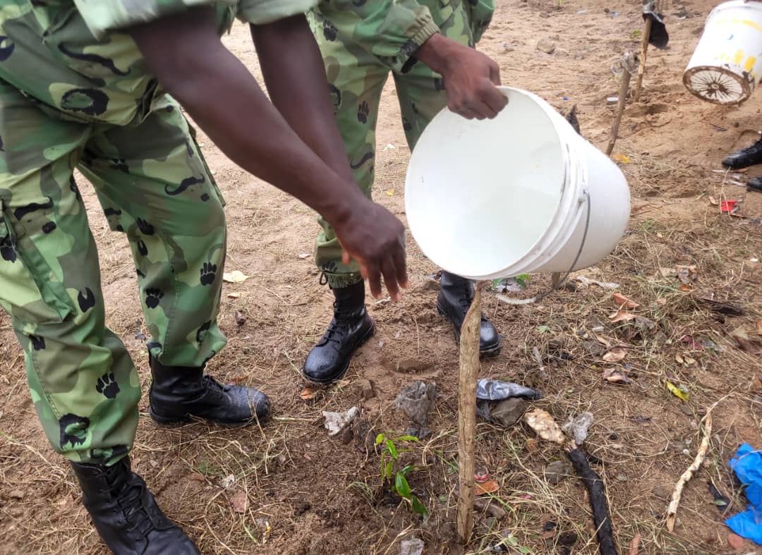 Au total, 100 plants (Sols Pleureurs et terminalia Superba) ont été mis en terre et arrosés sous la conduite des agents de la Direction Générale des Eaux, Forêts et Chasse.