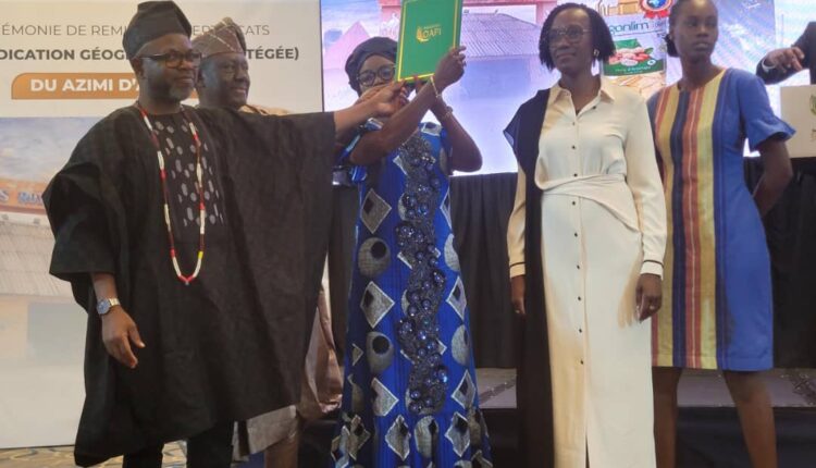 Après l’ananas Pain de Sucre, c’est le tour de deux autres produits localement produits au Bénin de se hisser au plan africain et mondial. Il s’agit du Gari Sohoui de Savalou et le ‘’Azimi’’ de Agonli. La cérémonie de remise des certificats IGP (Indication Géographie Protégée) s’est déroulée ce samedi 18 octobre 2025 au Novotel de Cotonou en présence de deux membres du gouvernement, du président du Conseil Economique et Social (CES), des responsables de l’OAPI, des bénéficiaires et des invités.