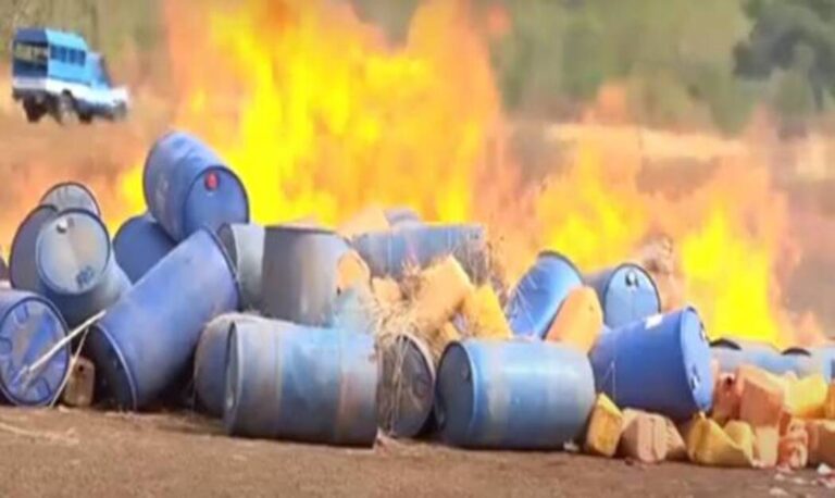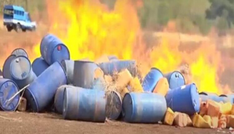 Les autorités togolaises ont procédé samedi denier à la destruction de 12 795 litres de boissons frelatées dans la région des Savanes. Il s’agit d’une lutte nationale contre la commercialisation de produits dangereux pour la santé publique. L’opération supervisée par le gouverneur Atcha-Dédji Affoh, s’est déroulée sur le site de la Fosse aux Lions, à la sortie sud de Dapaong. Sous le contrôle des forces de gendarmerie, de police et de douane, les agents ont procédé à l’incinération de 281 bidons de 25 litres, 4 bidons de 5 litres et 12 fûts de 250 litres de boissons illicites, communément appelées sodabi.