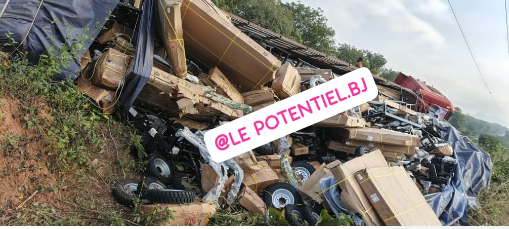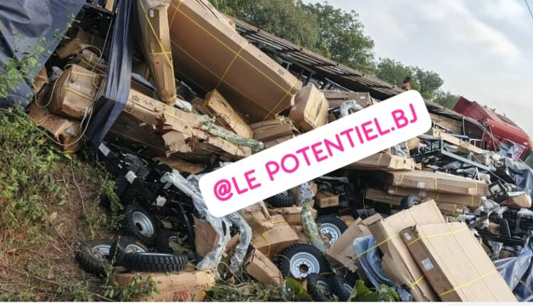 Département des collines: Un camion chargé de 120 tricycles s’emballe et se renverse à l’entrée de Savè
