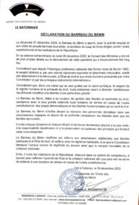 Réaction du barreau Béninois face au coup d’état avorté: Les avocats dénoncent la tentative de coup de force