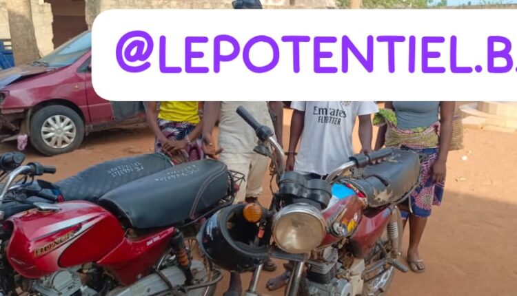 Les mis en cause forment un groupe aux profils variés, un menuisier et conducteur de taxi-moto domicilié à Houéto, un cultivateur résidant à Atonclan, ainsi qu’une coiffeuse et une cuisinière établies à Adjadji. Tous ont été interpellés dans le cadre d’une enquête déclenchée sur renseignements faisant état de la présence de motocyclettes volées dans un domicile.