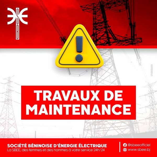 La Société Béninoise d’Energie Électrique informe son aimable clientèle qu’elle réalise des travaux de maintenance technique de fin d’année de son système informatique, en vue de la sauvegarde et de la sécurisation de sa base de données. A cet effet les services de paiement en ligne des factures de consommation d’électricité (postpayés) connaitront des perturbations du 31 décembre 2025 à 16h au 1er janvier 2026 à 2h. Elle précise par ailleurs que les achats de crédits en ligne (prépayés) ne seront pas impactés et fonctionneront normalement durant toute la durée de cette opération. La SBEE présente ses excuses pour les désagréments occasionnés et remercie sa clientèle pour sa compréhension. La SBEE, des femmes et des hommes à votre service 24h/24.