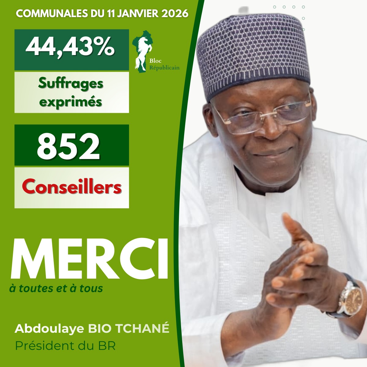 Les résultats définitifs des élections législatives et communales du 11 janvier 2026 confirment la position du Bloc Républicain (BR) comme l’une des principales forces politiques du pays. À l’issue du double scrutin, le parti dirigé par Abdoulaye Bio Tchané enregistre des performances notables aussi bien au parlement qu’au niveau des collectivités territoriales.
