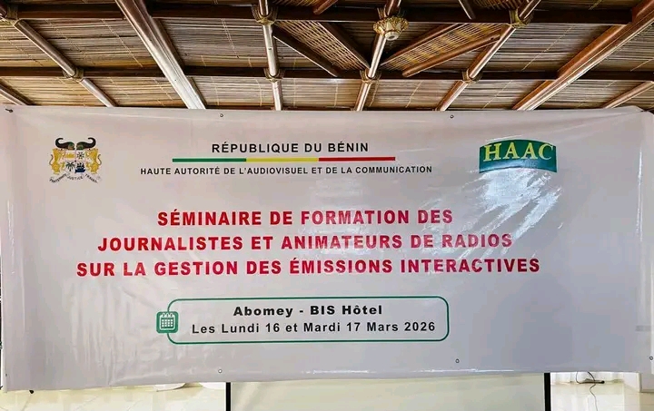 La Haute Autorité de l’Audiovisuel et de la Communication du Bénin (HAAC) organise un séminaire de formation au profit de la deuxième vague de journalistes et d’animateurs radio sur la gestion des émissions interactives. Démarrée ce lundi 16 mars, l’activité se tient à Bis Hôtel, dans la commune d’Abomey, et se poursuivra demain mardi 17 mars 2026.
