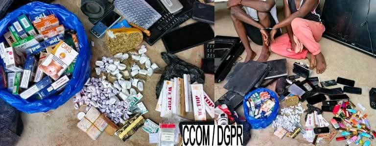 Parallèlement, les forces de l’ordre ont récupéré divers matériels électroniques et informatiques tels que :plus de 30 téléphones portables, 4 ordinateurs portables, 3 téléviseurs, un décodeur, un woofer, un équipement Wi-Fi, plusieurs cartes SIM et 2 motocyclettes. Certains de ces éléments, suspectés d’avoir servi à des opérations de cybercriminalité, ont été transmis au Centre National d’Investigations Numériques (CNIN) pour approfondissement des enquêtes.