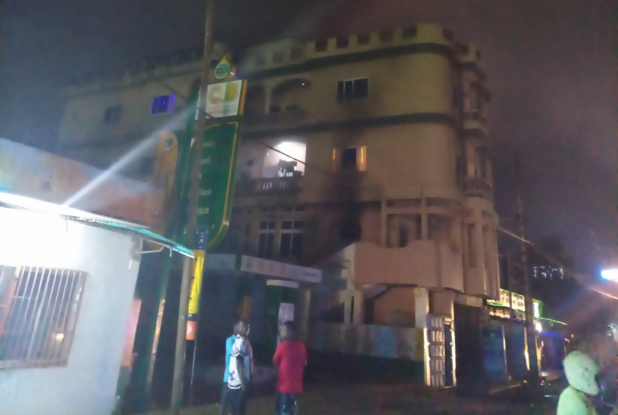 Selon des témoins présents sur la route inter-États, d’importantes fumées noires, visibles à plusieurs mètres, ont rapidement alerté les passants. Le feu, dont l’origine serait localisée dans un magasin situé au rez-de-chaussée de l’immeuble, s’est propagé vers les étages supérieurs, laissant apparaître des flammes intenses.