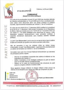 Au lendemain de la proclamation des résultats définitifs de la présidentielle du 12 avril 2026, le parti Les Démocrates s’aligne sur les nouvelles exigences constitutionnelles. Il annonce une réorganisation de ses activités durant la période de trêve politique désormais en vigueur.